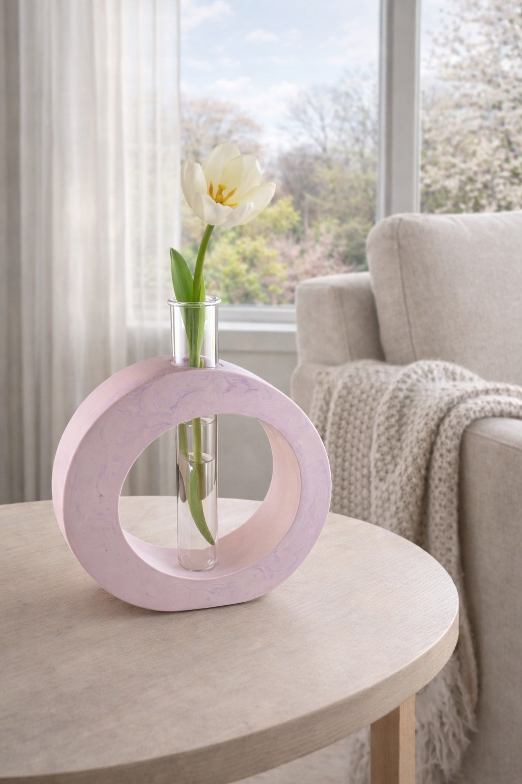 Die Dekovase „Soft Loop“ überzeugt durch ihre außergewöhnliche, ovale Form und eine ruhige, moderne Ausstrahlung.
