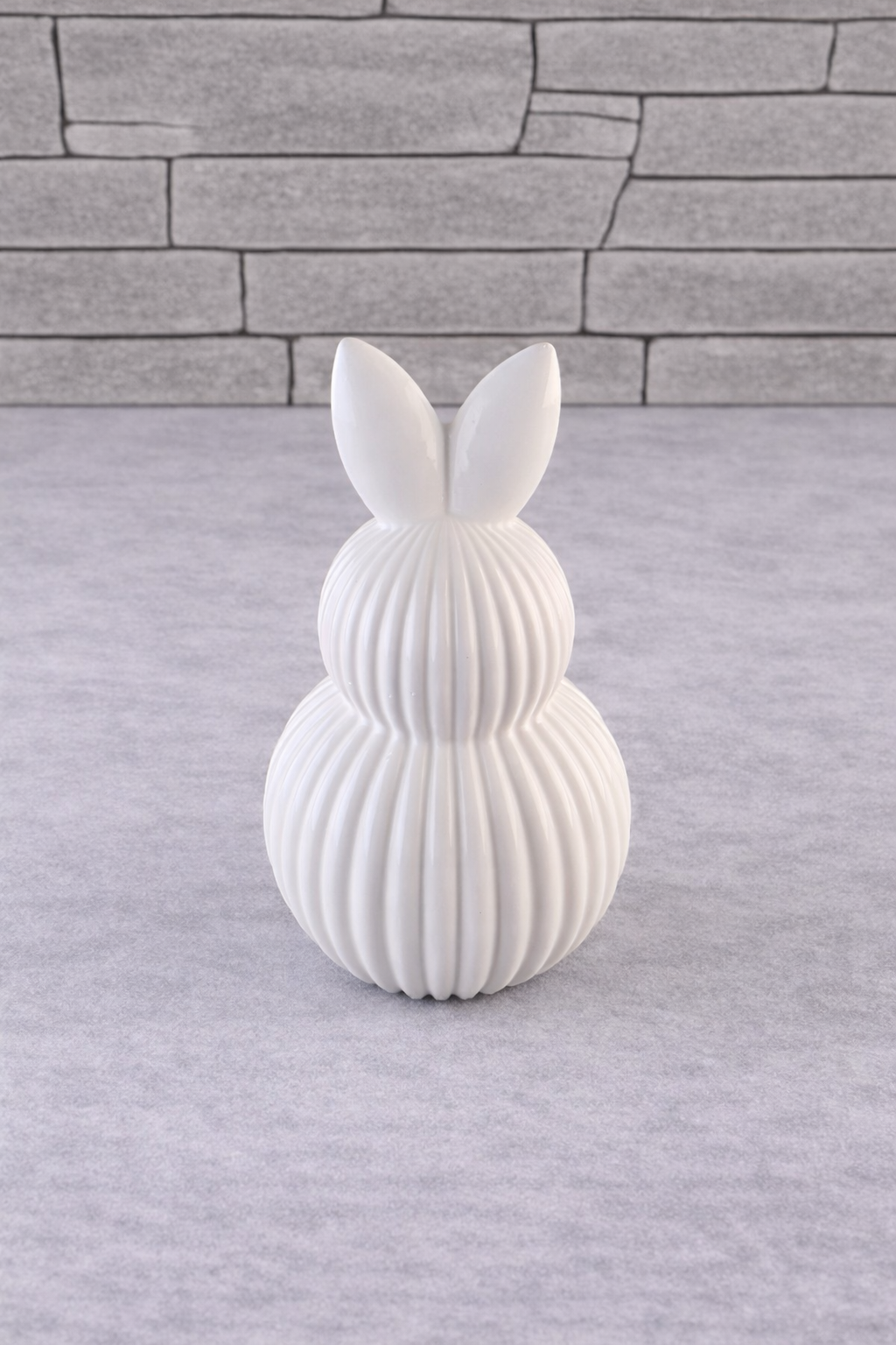 Die Dekofigur „Hase Luna“ überzeugt durch ihre klare Formensprache und die harmonische Rillenstruktur, die dem Design Tiefe und Eleganz verleiht.