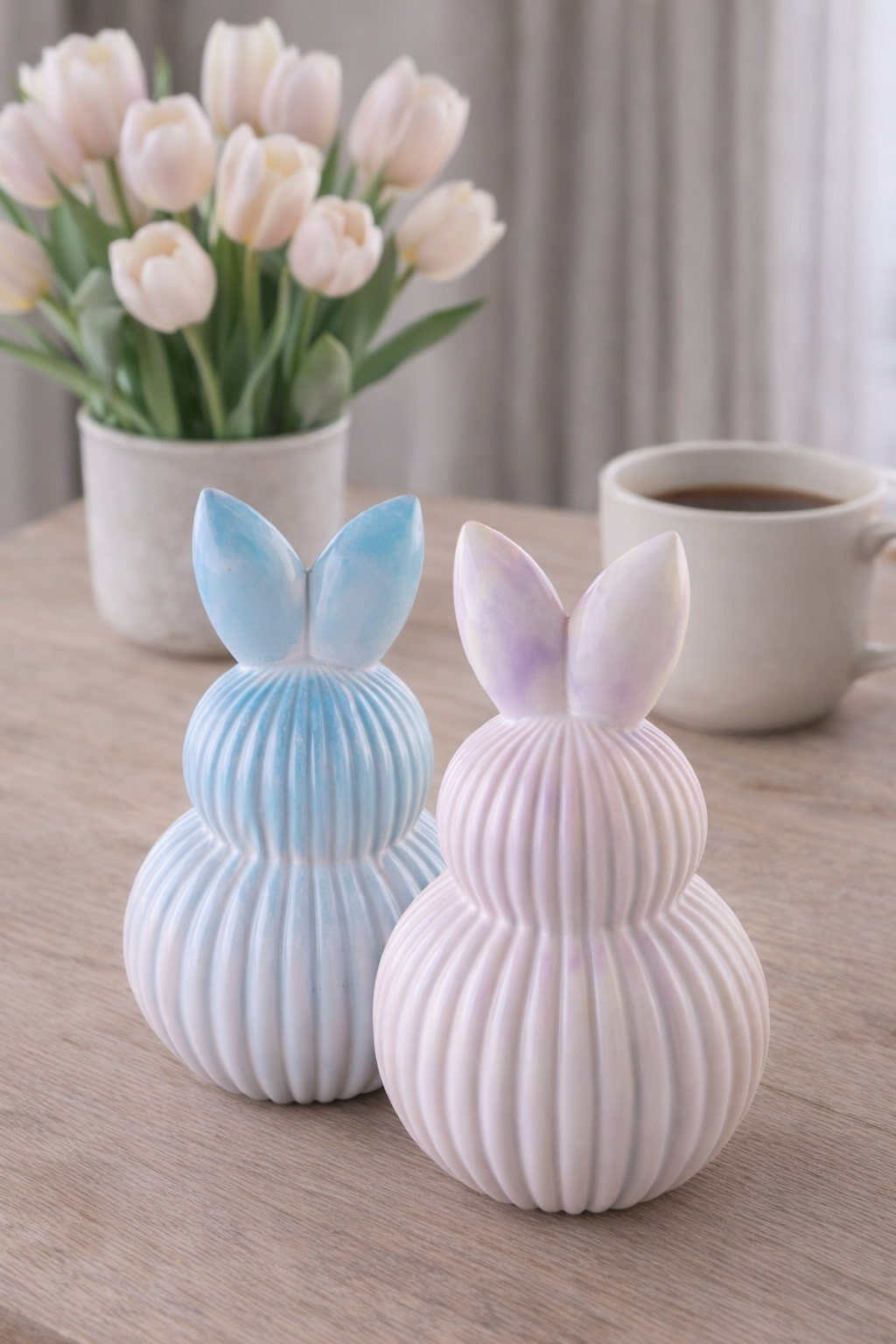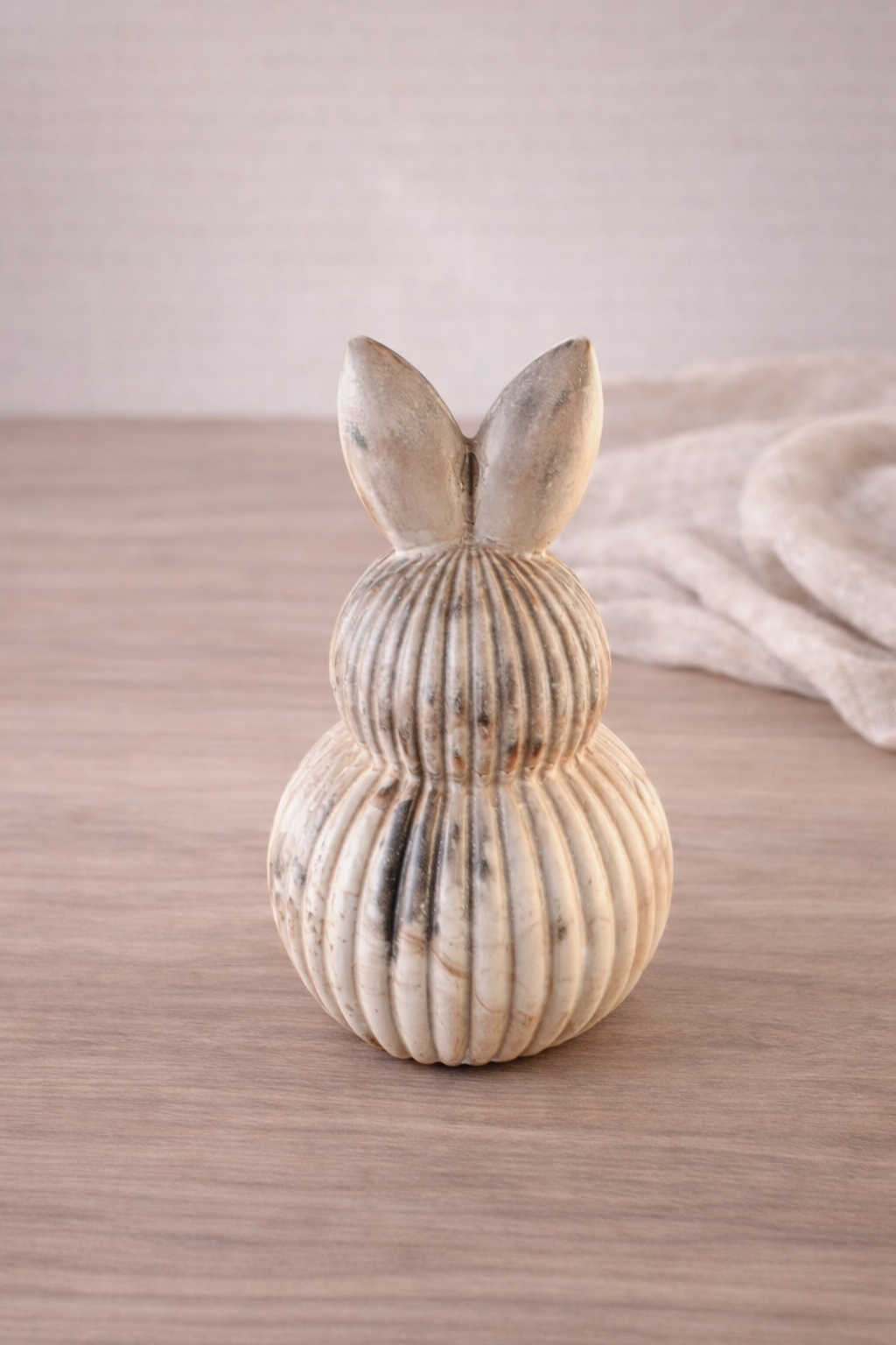 Ob als dezenter Blickfang auf dem Tisch, dem Sideboard oder der Fensterbank – dieser Hase fügt sich mühelos in moderne, natürliche und minimalistische Wohnkonzepte ein.