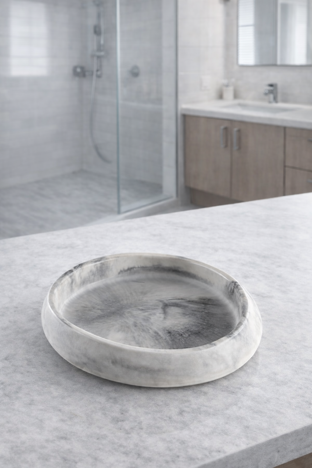 Die Dekoschale „Soft Blush“ besticht durch ihre sanfte Farbgebung und die feine, natürliche Marmorierung in zarten Tönen.